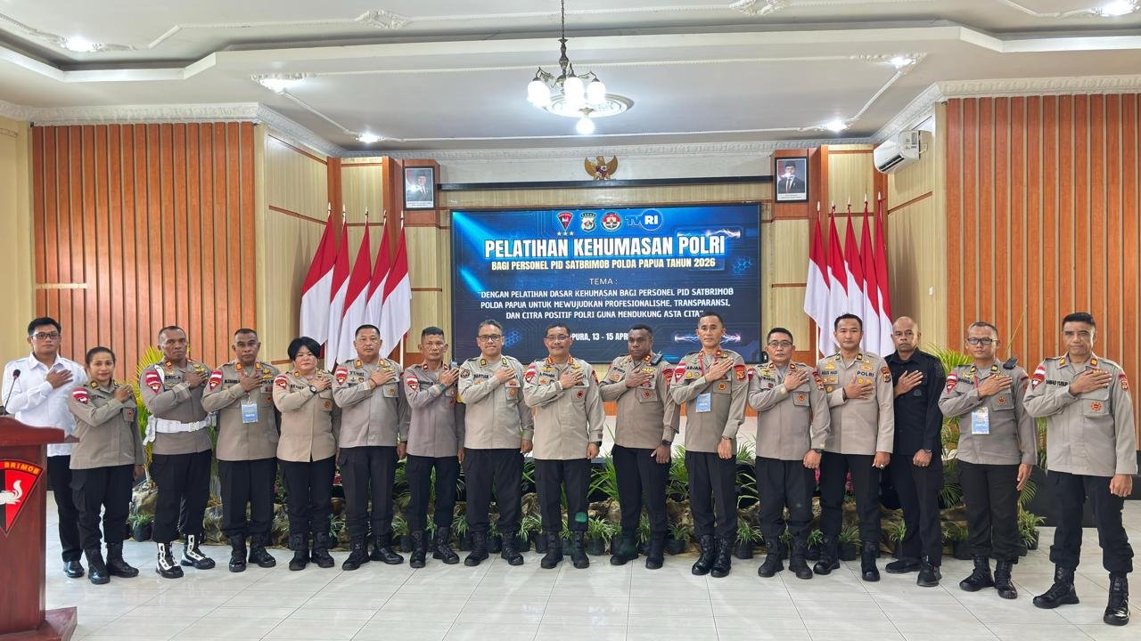 Papua – Satuan Brimob Polda Papua menggelar kegiatan Pembukaan Pelatihan Kehumasan Polri bagi Personel PID Satbrimob Polda Papua Tahun 2026 yang berlangsung di Aula Koesjari Satbrimob Polda Papua. Kegiatan ini diikuti oleh personel PID Brimob serta didukung oleh jajaran pejabat utama Satbrimob Polda Papua dan personel Bidang Humas Polda Papua, Senin (13/04/26).